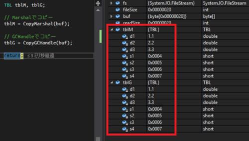 C言語の構造体を、C#の構造体へ取り込めないか試してみました。 「C言語で構造体作成→バイナリデータ出力→C#で同構成の構造体を作成→C#でバイナリデータ読込→構造体にデータをコピー」 ということができないか調べてみました!